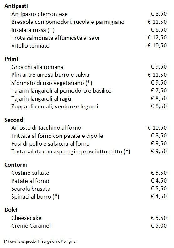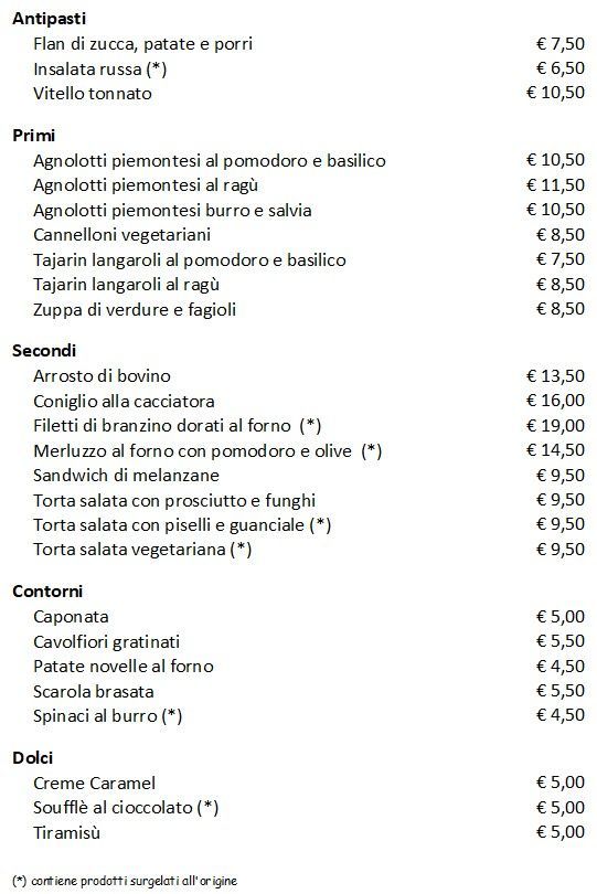 In caso di eventuali allergie o intolleranze alimentari, vi chiediamo di segnalarle subito.