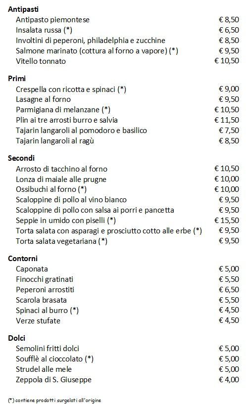 Il menu di oggi a pranzo